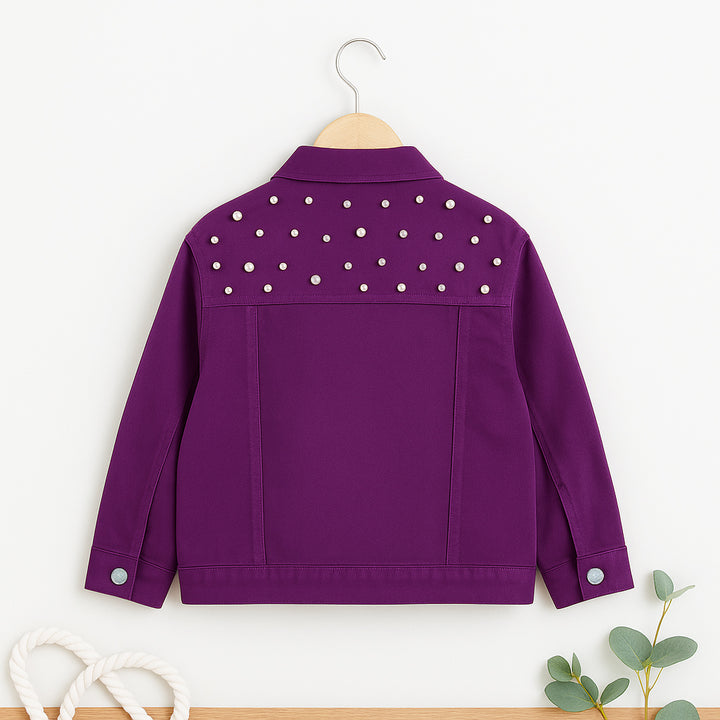 Girls Purple Jacket with Pearl Studs | Stylish Winter Wear